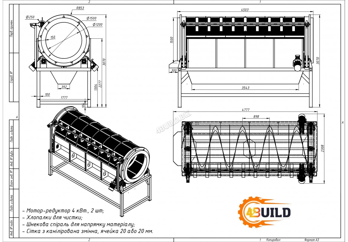 довжиною 4 500 мм, шнекова спіраль для напрямку матеріалу та