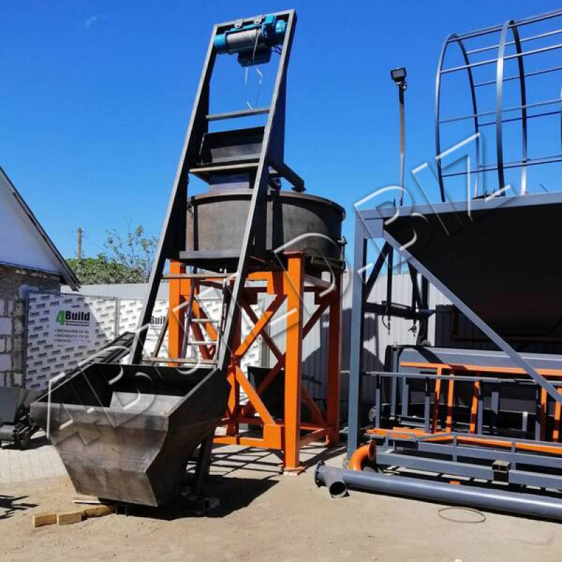 піднімає його на рівень бетонозмішувача і інертні подаються всередину корпусу
