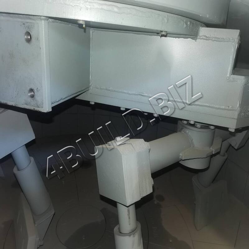 Готовий розчин вивантажується через затвір, який приводиться у дію маслостанцією потужністю 2.2 кВт через гідроциліндр. Загальна вага бетонозмішувача становить 2 000 кг.