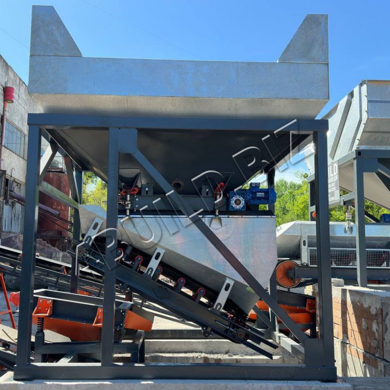 автоматика включає привод конвеєра-дозатора і зважена доза інертних надходить в