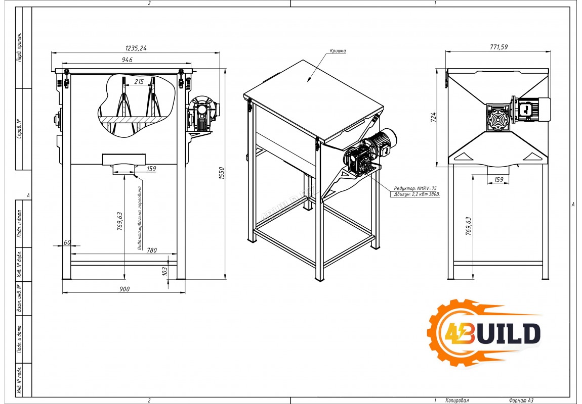 - Потужний привід - мотор-редуктор 3 кВт