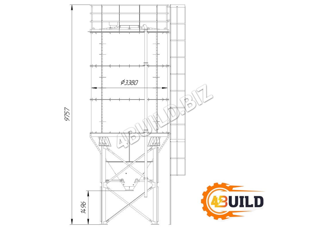 Конструкція силосу- це металевий циліндр, закритий зверху кришкою з вентиляційними отворами і фільтрами, що закінчується знизу конусом з отвором і встановленим в ньому шиберним затвором для видачі цементу. Встановлюється вертикально на опорах.