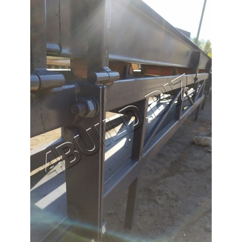 Барабани огинає нескінченна конвеєрна стрічка, що спирається на верхні опорні ролики і плоскі нижні роликові опори. У робочому положенні ферма спирається на стійку.