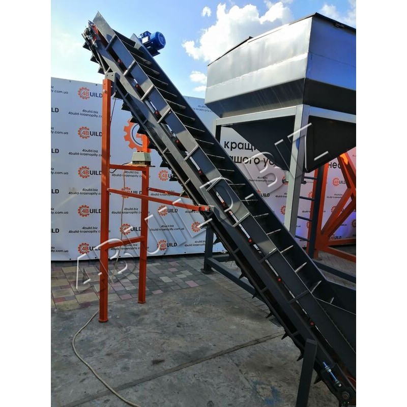 Конвеєр з вулканізованою стрічкою і кнопкою пускачем, довжиною 3,5 метрів і шириною 400 мм. Призначений для переміщення в горизонтальній і похилій площині сипучих і дрібнокускових матеріалів. Переваги стрічкового конвеєра в тому, що він надійний в експлуатації і може переміщати великі обсяги сировини - від декількох тонн на годину.