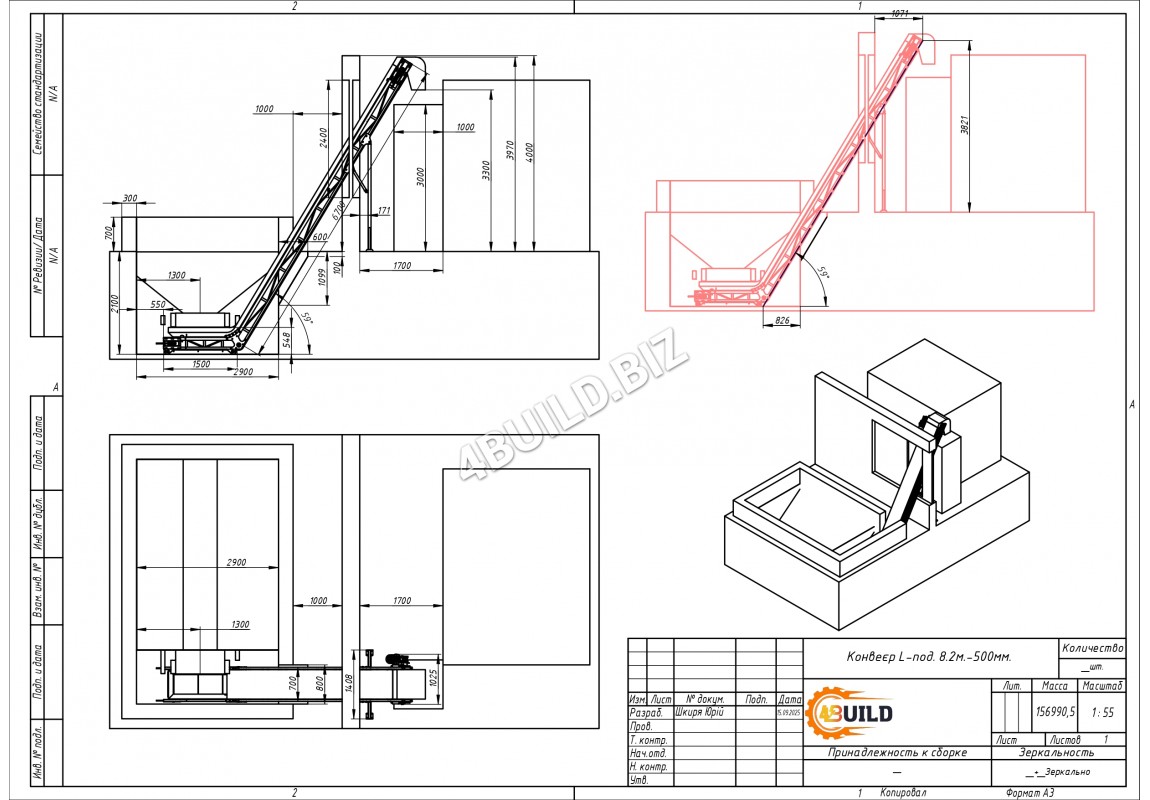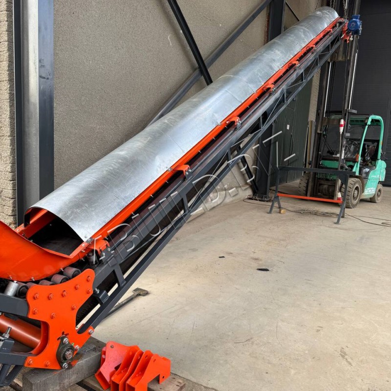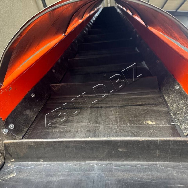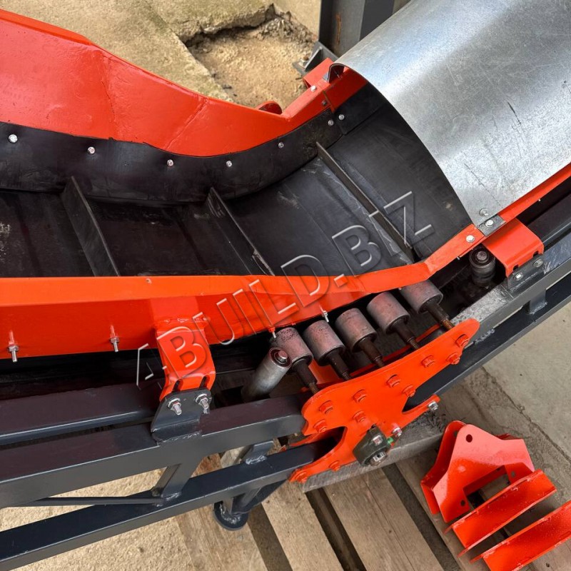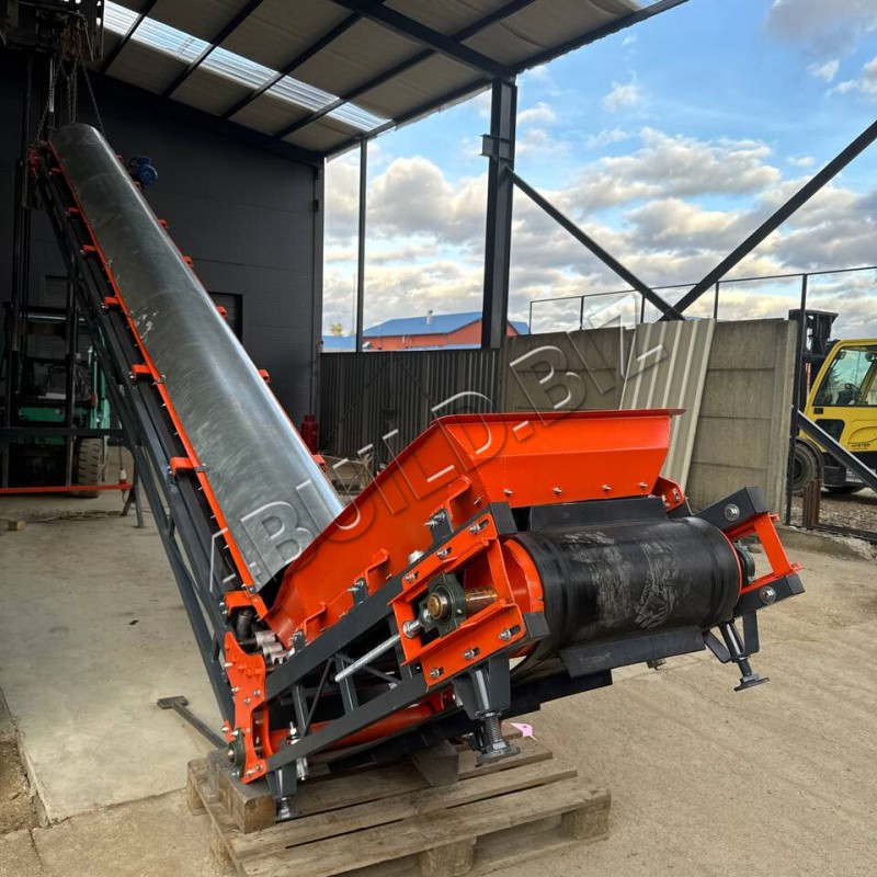 Стрічковий транспортер L-подібної конфігурації довжиною 8,2 м та шириною 500 мм призначений для транспортування щепи. Конструкція складається з горизонтальної частини (1,5 м) та похилого відрізка (6,7 м), що забезпечує плавну подачу матеріалу та стабільну роботу обладнання.