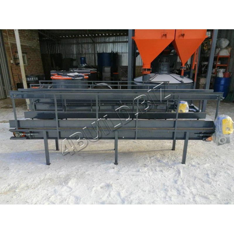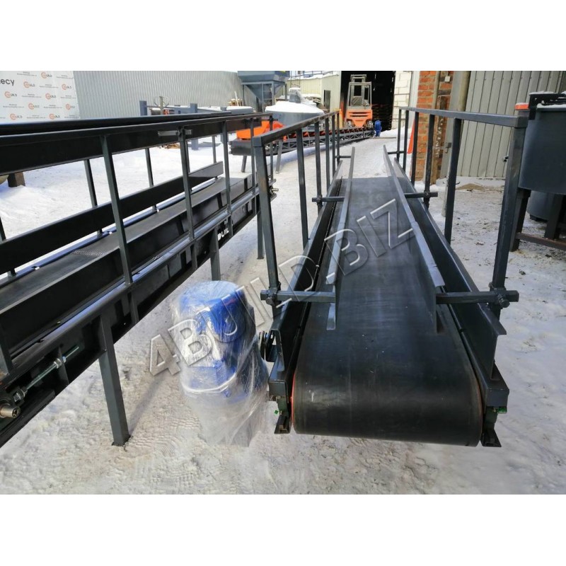 Стрічковий конвеєр довжиною 3 метрів та шириною 400 мм. Призначений для переміщення і розклеювання етикеток на мішках від 5 до 50 кг. Перевагою конвеєра є те, що він оснащений регульованими бортами, які не дозволяють вантажу зісковзнути з транспортуючої стрічки під час її руху.