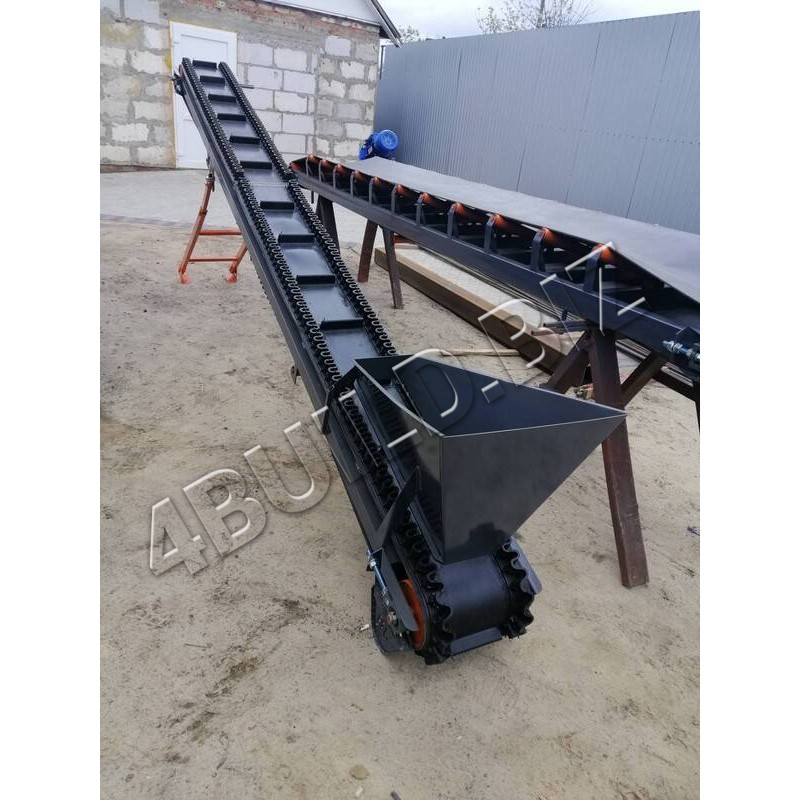 Виробник 4Build - Краснопільський завод бетонозмішуючого обладнання та металоконструкції пропонує Вам конвеєр з вулканізованою стрічкою та шевронними бортами, довжиною 4 метра та шириною 300 мм.