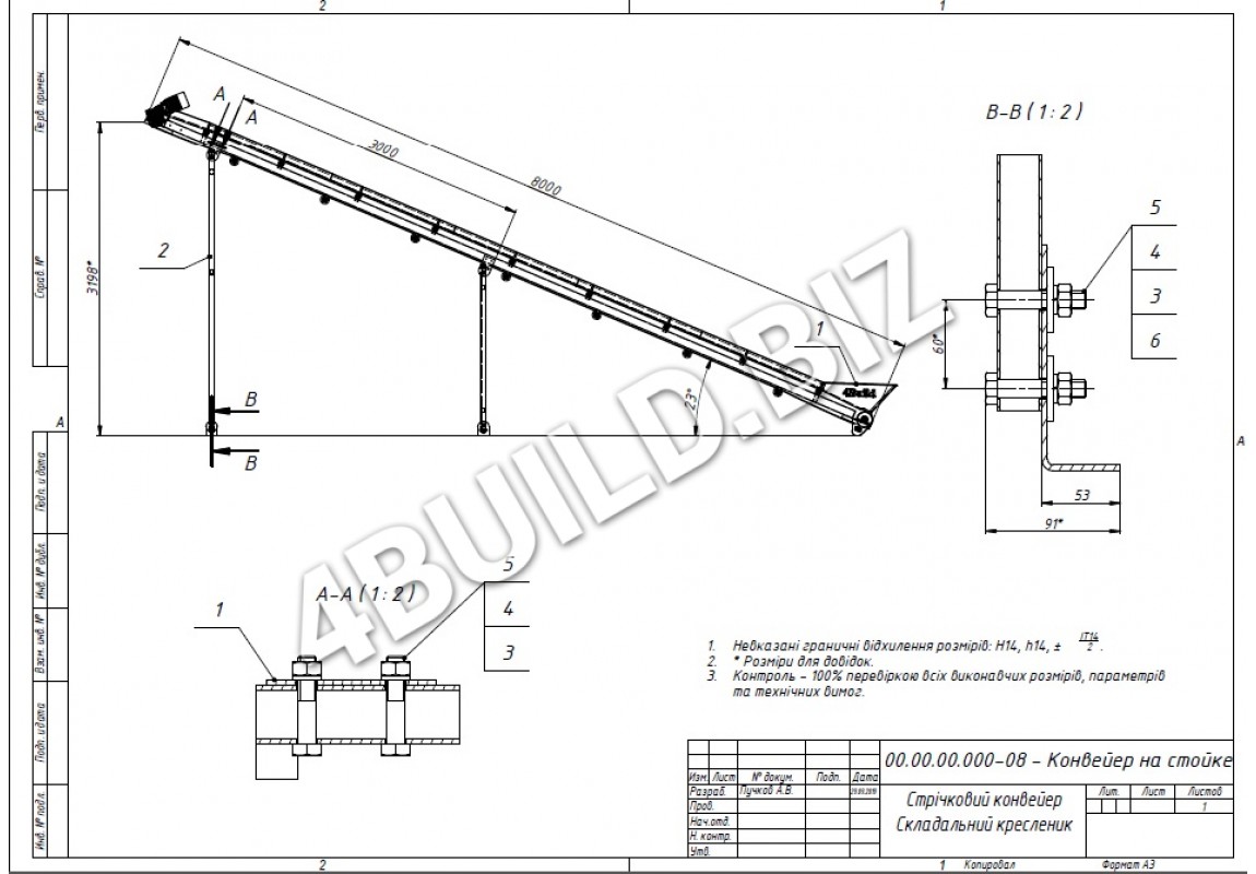 застосування конвеєра та вимог Замовника. Кут нахилу вибирається при