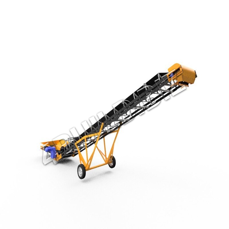нижньому кінці транспортера, завантажується сипучий матеріал. З іншого кінця