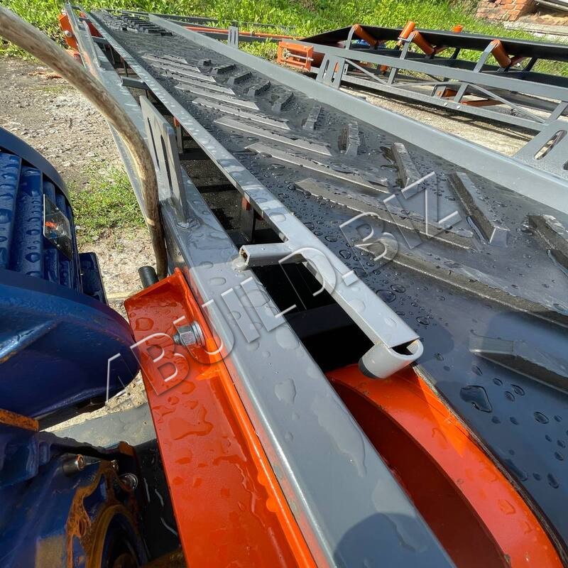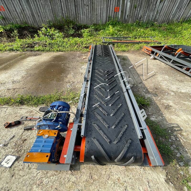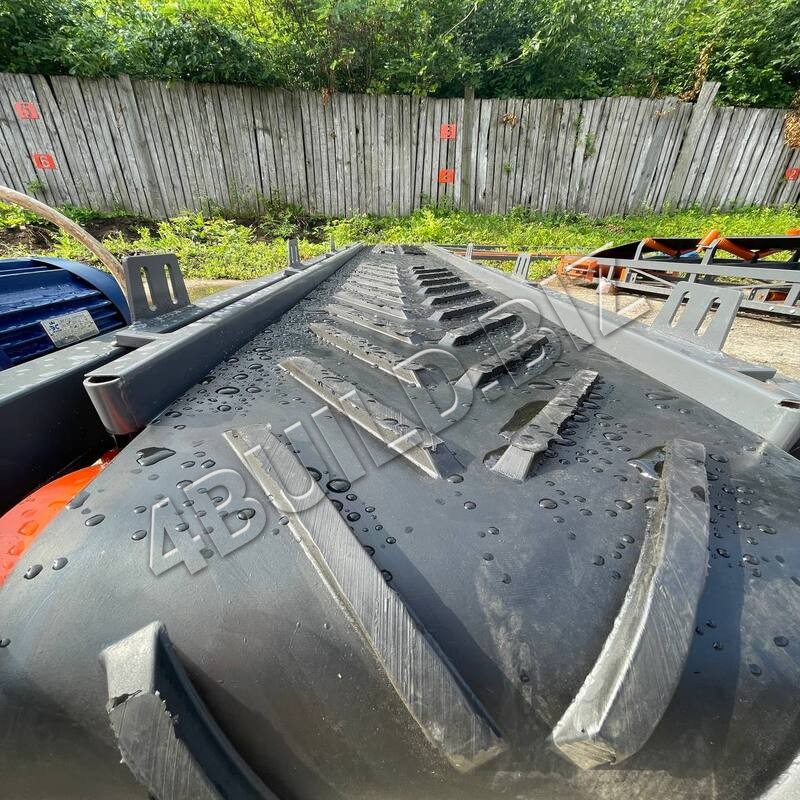 Сердце транспортера – мотор мощностью 1.5 кВт червячного типа приводит в действие шевронную ленту (тип – шеврону Елка, шаг – 10 см.) толщиной 6 мм, соединение выполнено методом ГОРЯЧАЯ ВУЛКАНИЗАЦИЯ.