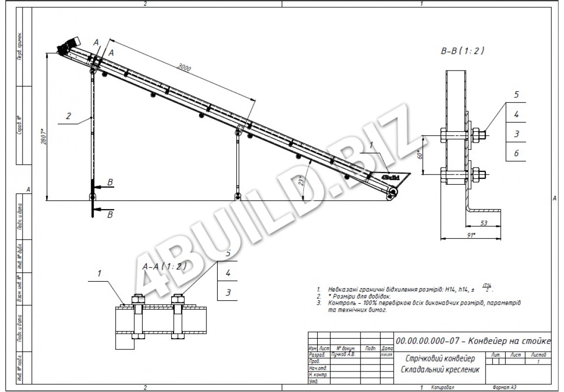 застосування конвеєра та вимог Замовника. Кут нахилу вибирається при