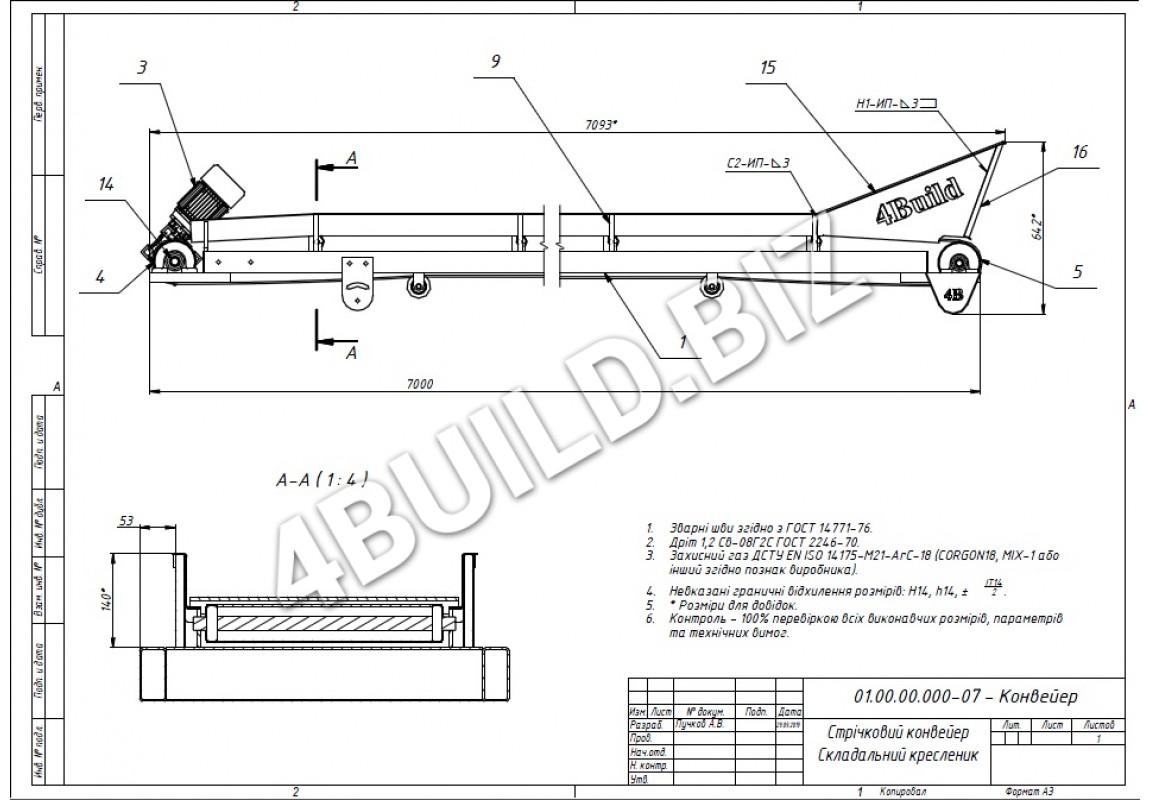 ВИГОТОВЛЕННЯ ТРАНСПОРТЕРА ЗА ТАКИМИ ТЕХНІЧНИМИ ХАРАКТЕРИСТИКАМИ: