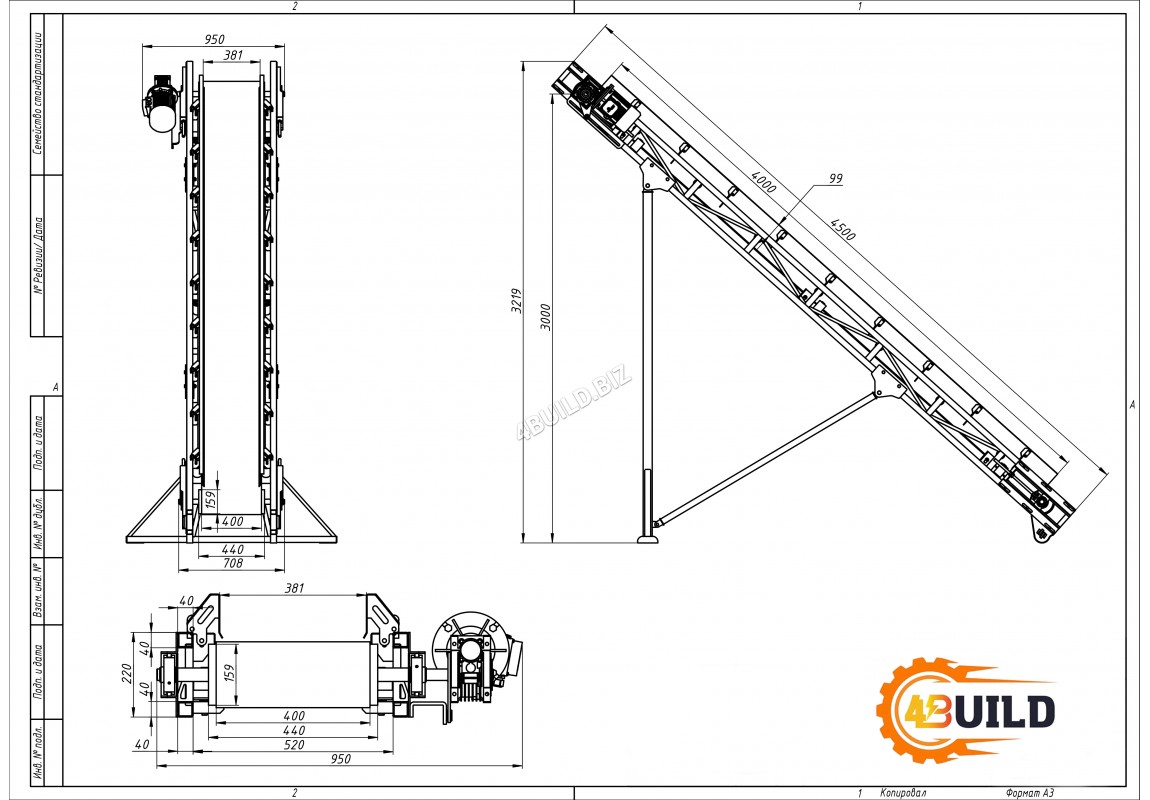 конвеєр похилий ЛТ-4.5-400 від виробника «4БІЛД» довжиною 4.5