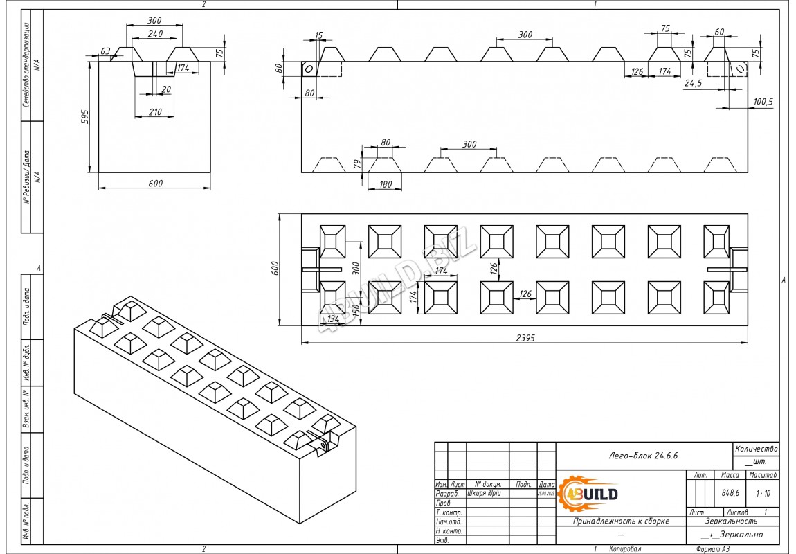 • Металоформа Лего-блок 2 400 х 600 х 600 з бічними болтовими з'єднаннями