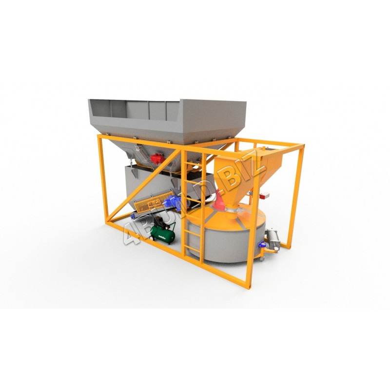 Бетонозмішувач СБ-1000 вмонтований в опорну раму бункера. Мобільний завод обладнаний