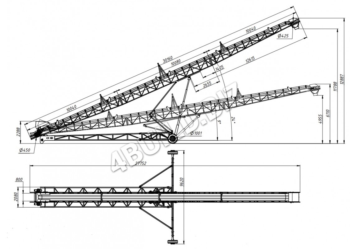 приводом забезпечує кругове розсіювання продукції навколо осі конвеєра;
