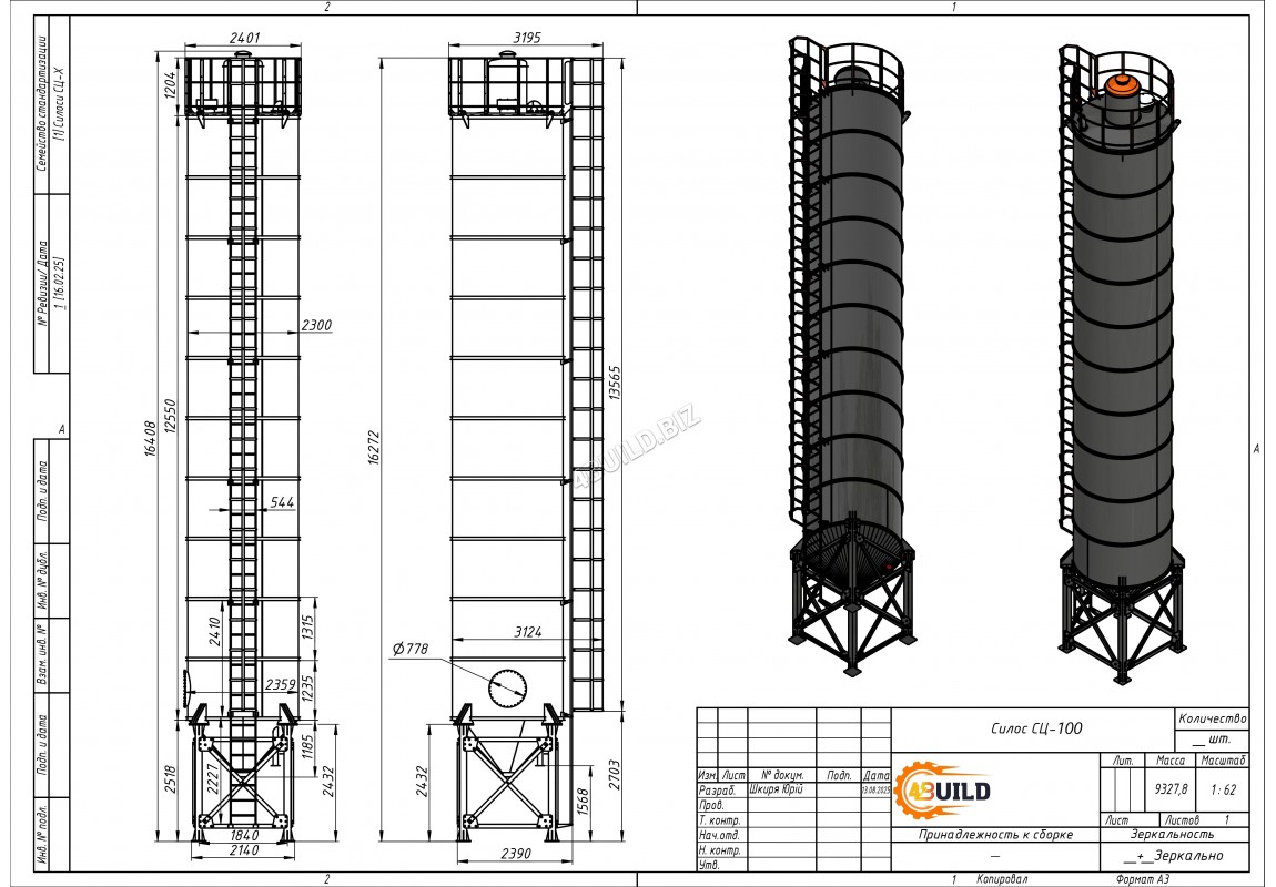 Конструкція силоса включає бочку діаметром 2400 мм,