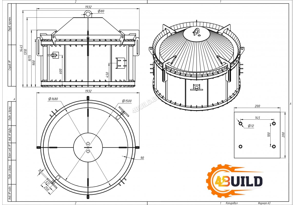 Форма зроблена з листової сталі товщиною 6